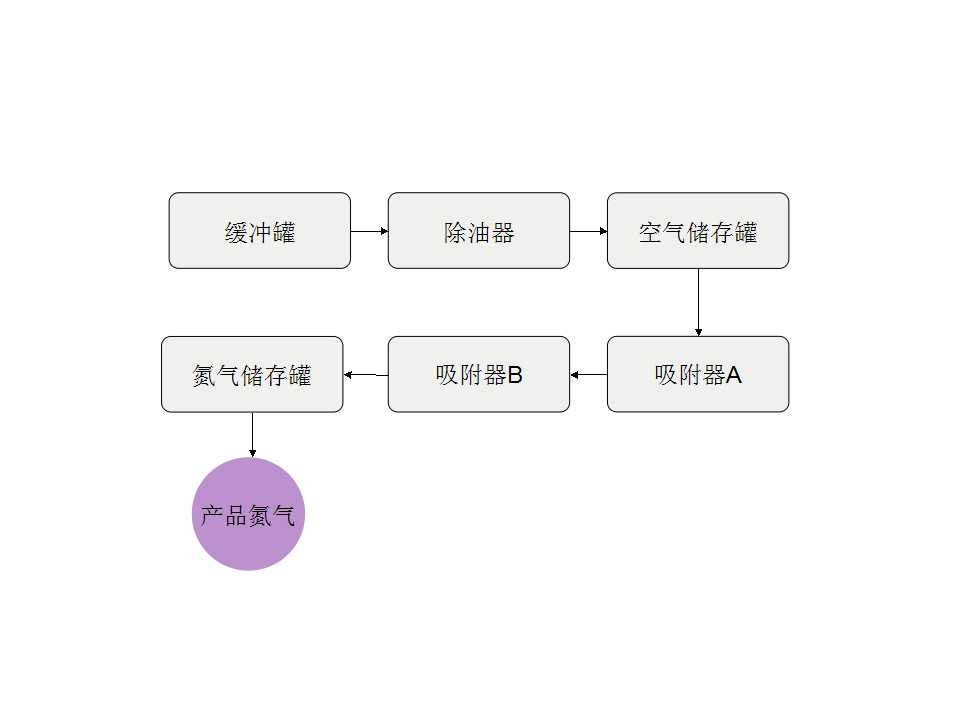 變壓吸附裝置是利用壓縮空氣為原料,采用變壓吸附原理和技術(shù)制取所需氮?dú)獾脑O(shè)備。變壓吸附裝置采用碳分子篩為吸附劑,一定的壓力下,碳分子篩對(duì)空氣中的氧的吸附遠(yuǎn)大于氮,A、B兩塔可以交替循環(huán),加壓吸附、減壓脫附,完成氧氮分離,得到所需純度的氮?dú)狻?/span>